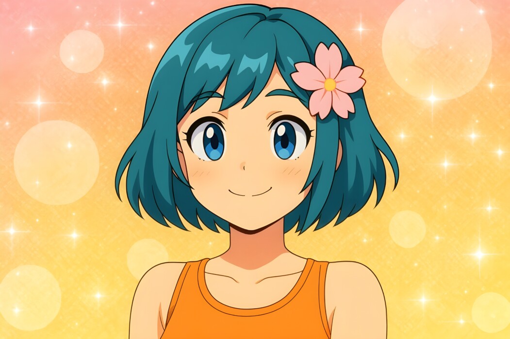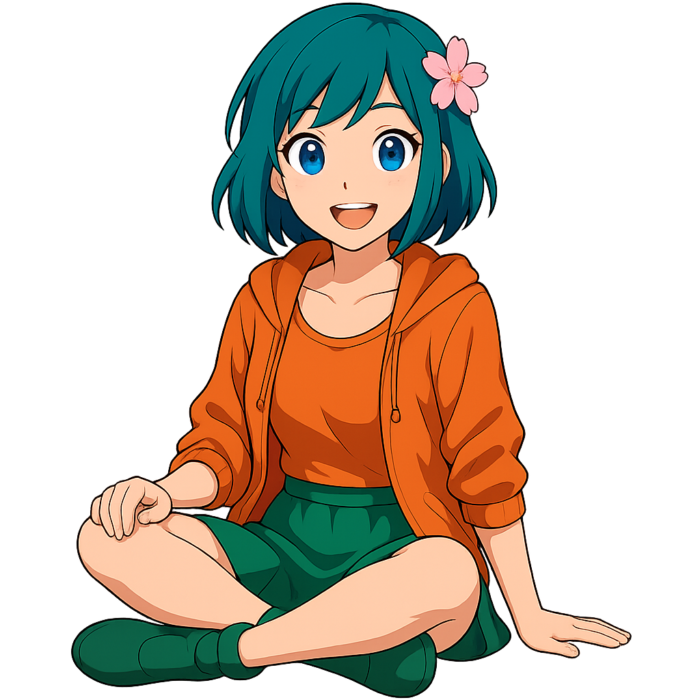 Depicted as a young girl with teal hair and blue eyes, Hikari Yorokobi’s main purpose revolves around spreading positivity, motivation, and happiness to anime fans while representing the brand.