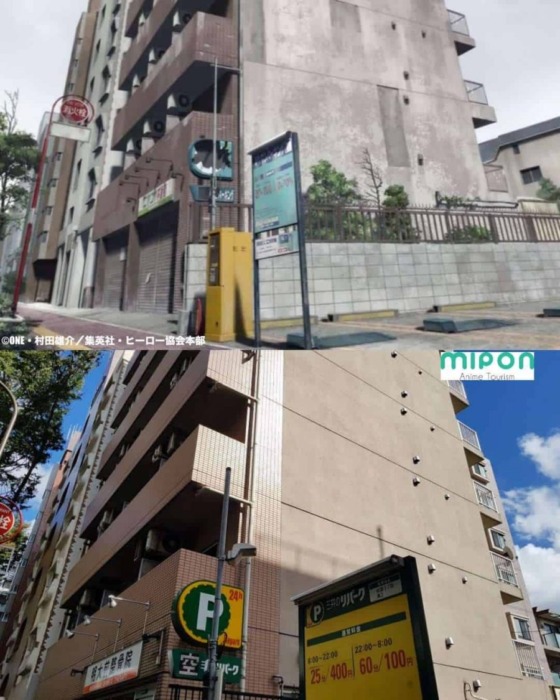 In One Punch Man, Saitama’s apartment and the street mirror a real-life anime setting, derived from an actual apartment and street in Meidaimae.